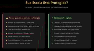 Agende uma consultoria estratégica e descubra como blindar sua escola ou negócio contra processos, crises e vulnerabilidades jurídicas
